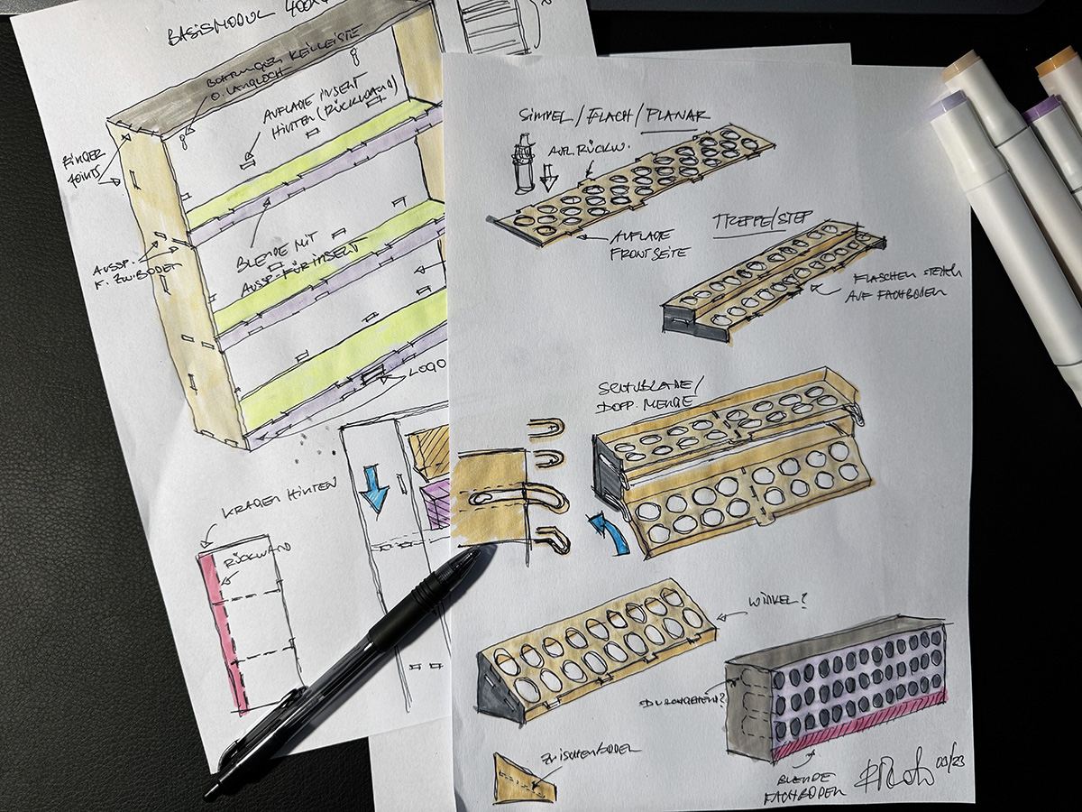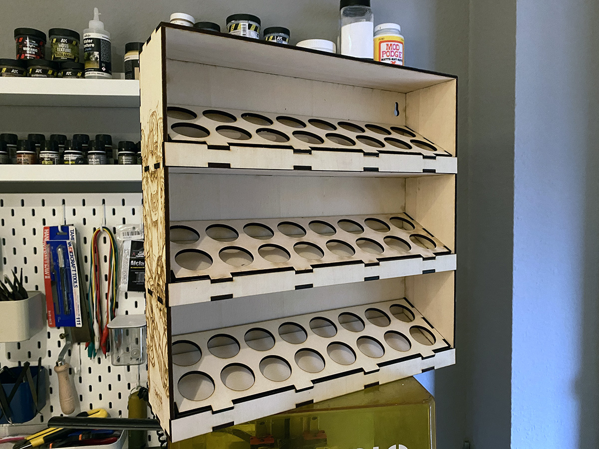 I have built countless prototypes, sketched and refined detailed solutions and discarded many of them. 'one.' has become a product. It solves the problems we face every day in our hobby. It brings order and clarity. It gives us a quick overview of our paints and supplies and we decide what goes where according to our needs. And it grows with our requirements.